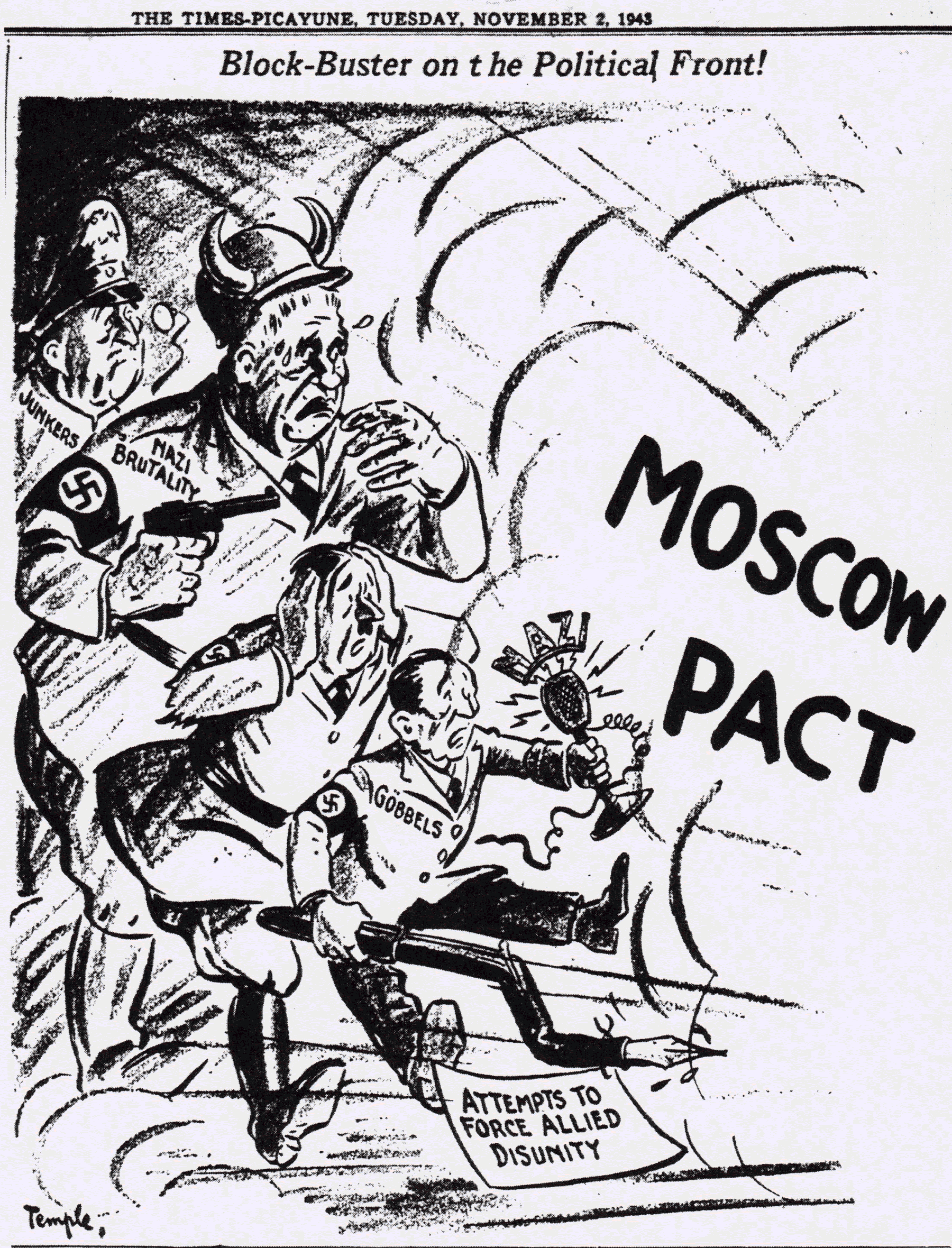 The Times-Picayune , November 1, 1943 - Cartoon, We Await a Boom from the Second Moscow Cannon , p. 6