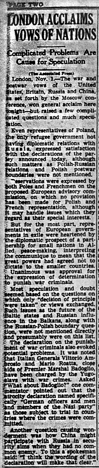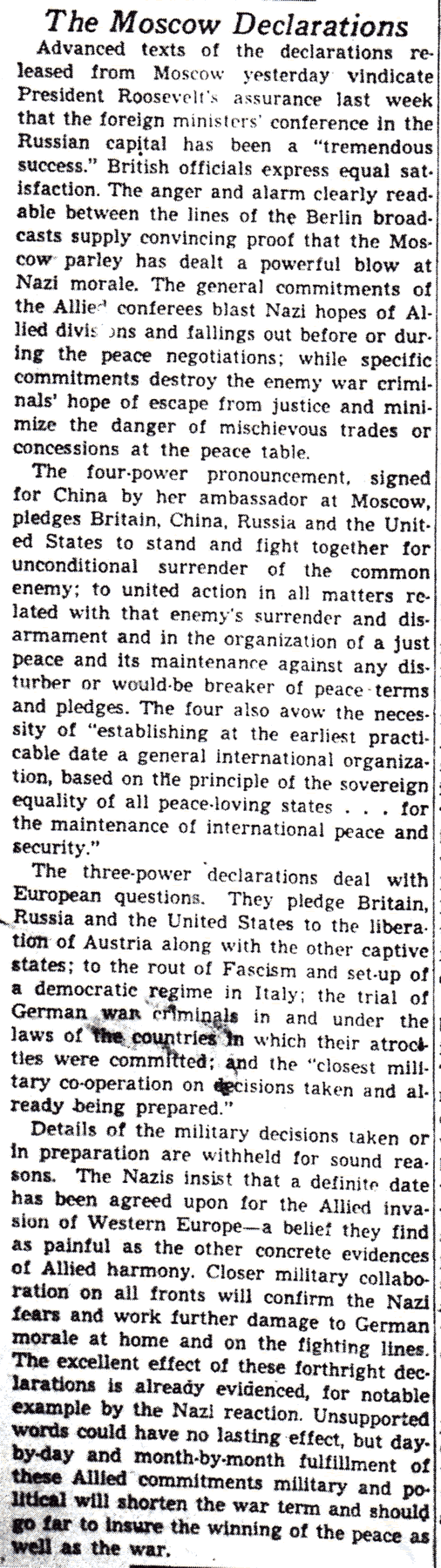 The Times-Picayune, November 2, 1943 - Editorial, THE MOSCOW DECLARATIONS, p. 8