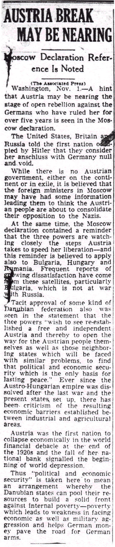 The Times-Picayune, November 2, 1943 - AUSTRIA BREAK MAY BE NEARING, Moscow Declaration Reference Is Noted, p. 3