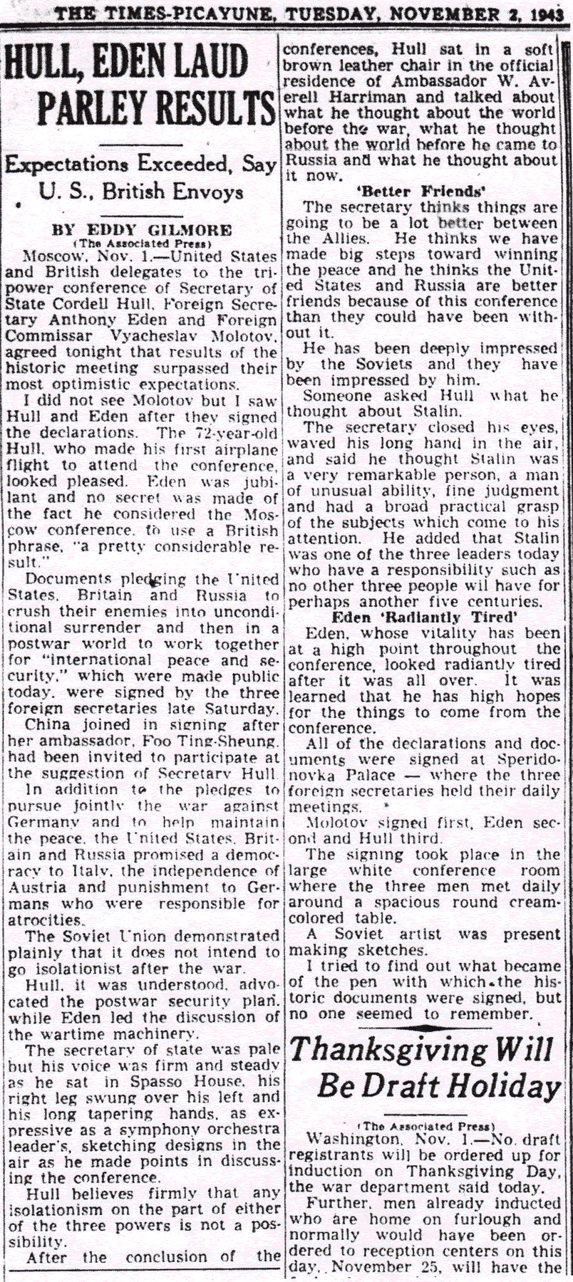 The Times-Picayune, November 2, 1943 - HULL, EDEN LAUD PARLEY RESULTS, (AP) p. 3