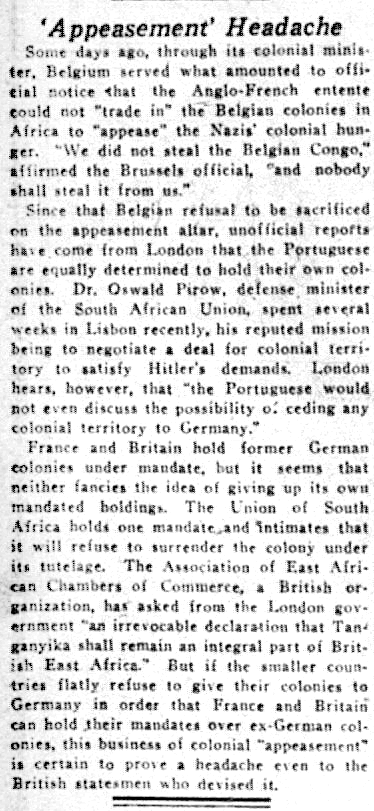 The Times-Picayune, November 10, 1938 - Editorial, Appeasement Headache, p. 8
