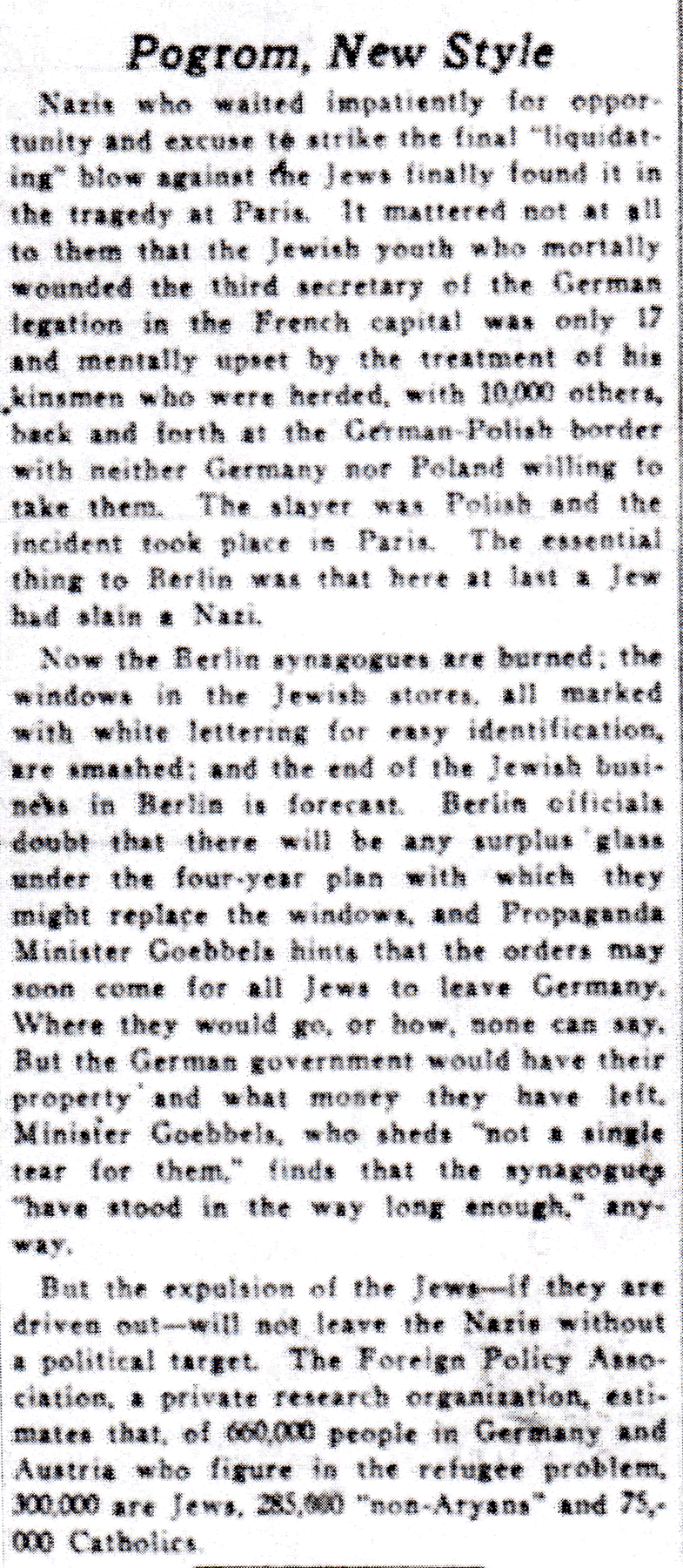 The Times-Picayune, November 12, 1938 - Editorial, Pogrom, New Style, p. 10
