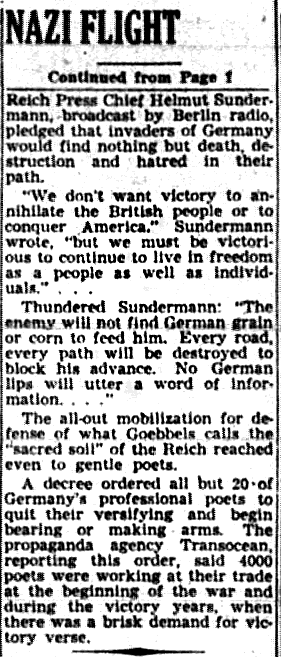 The Times-Picayune , September 5, 1944 - NAZI FLIGHT , p. 2