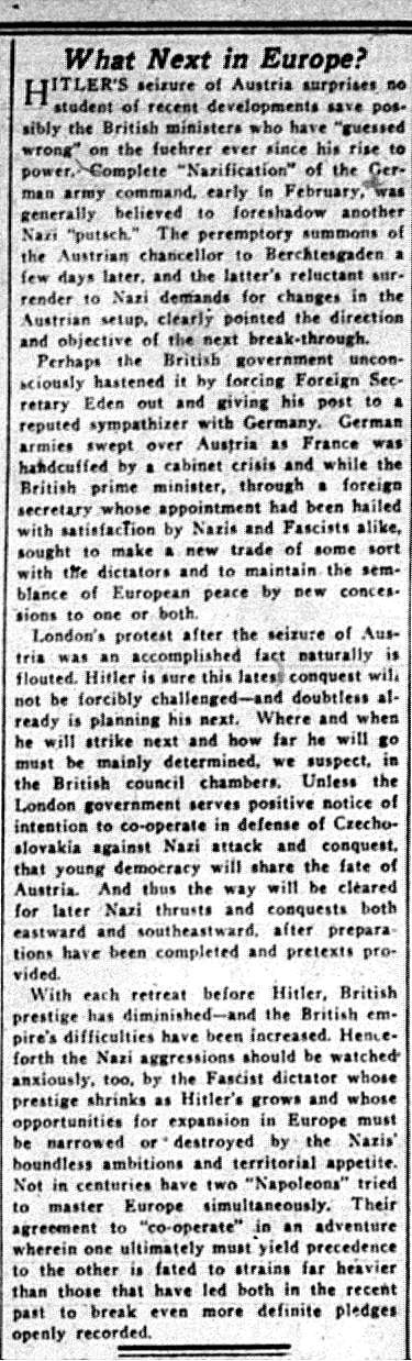 The Times-Picayune, March 14, 1938 - Editorial, What Next in Europe? p. 8