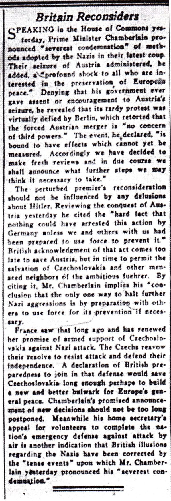 The Times-Picayune, March 15, 1938 - Editorial, Britain Reconsiders, p. 6