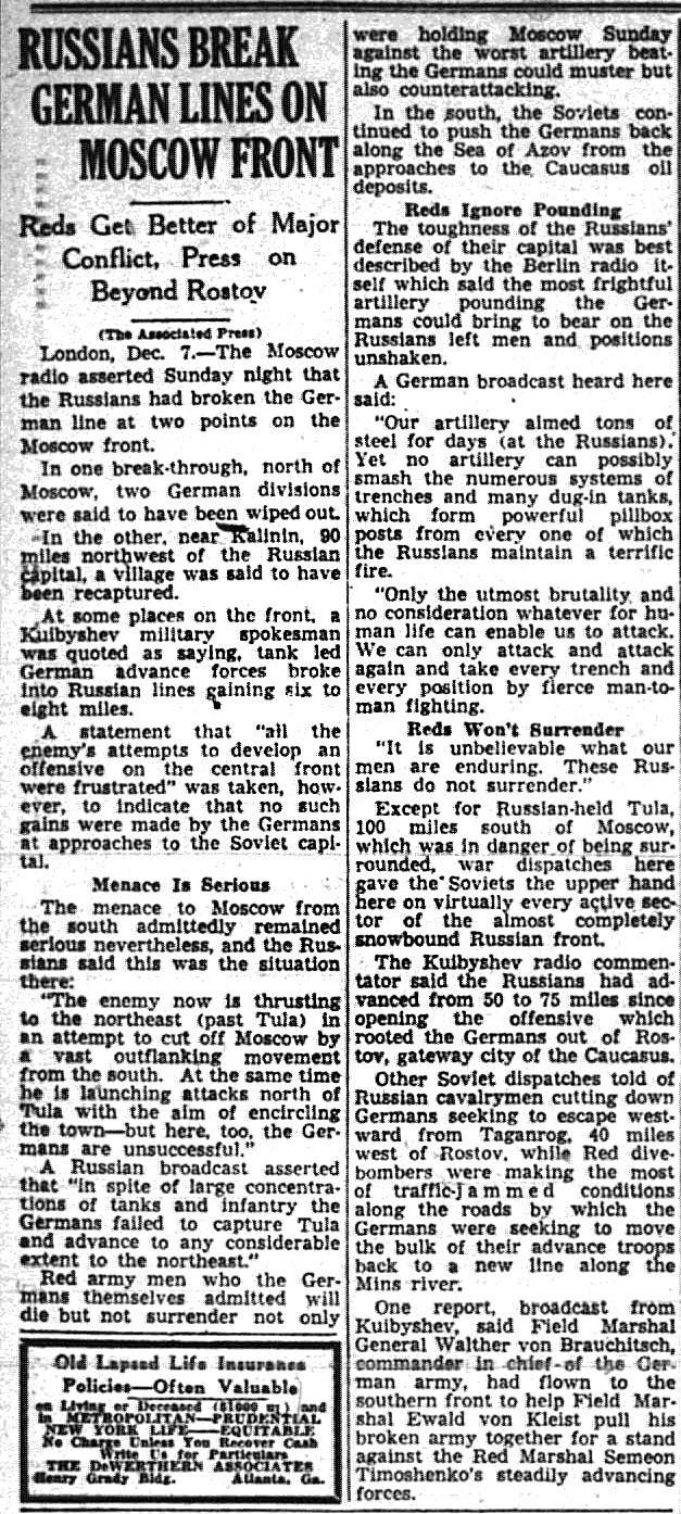 December 7, 1941 – Japanese attack on Pearl Harbor