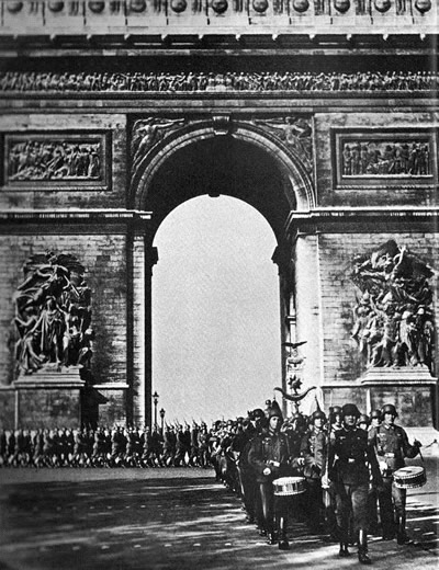 After the brief campaign in Poland, Hitler wanted to attack the countries of Western Europe immediately but was forced to wait until the spring of 1940. The German armies attacked Norway and Denmark in April and swept across the Low Countries and northern France in May and June. The Blitzkrieg was devastating and the British and French armies were routed. One country after another capitulated. The vindictive German fuehrer compelled the French delegation to sign the surrender documents at Compiegne, a town north of Paris where the Germans themselves had surrendered to the Allies in November 1918. German troops marched passed the Arc of Triumph in Paris, as their grandfathers had done in 1871 following the Franco-Prussian War. Hitler’s popularity was at its peak, and he now turned his attention to the Soviet Union.